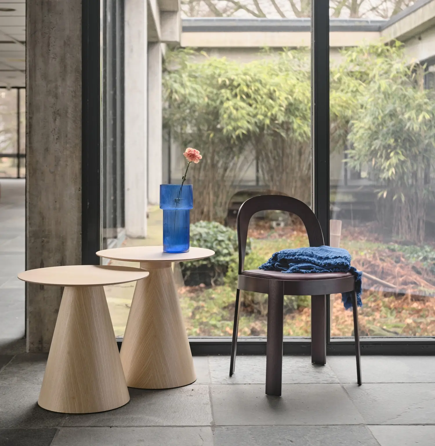Blå Station sin bordkolleksjon spenner fra alt til morsomme sofabord til store møtebord. Alltid med en liten tvist. Et godt eksempel på det er fjorårets nyhet Veva. En herlig kombinasjon av den nostalgiske opplevelsen av å sveive ned et vindu kombinert med høy teknologi som gjør bordet lekende lett å sveive og som holder seg der du stopper. På denne måten får du over 4000 forskjellige høyder fordelt på 2 typer. Sofa til spis og spis til bar.